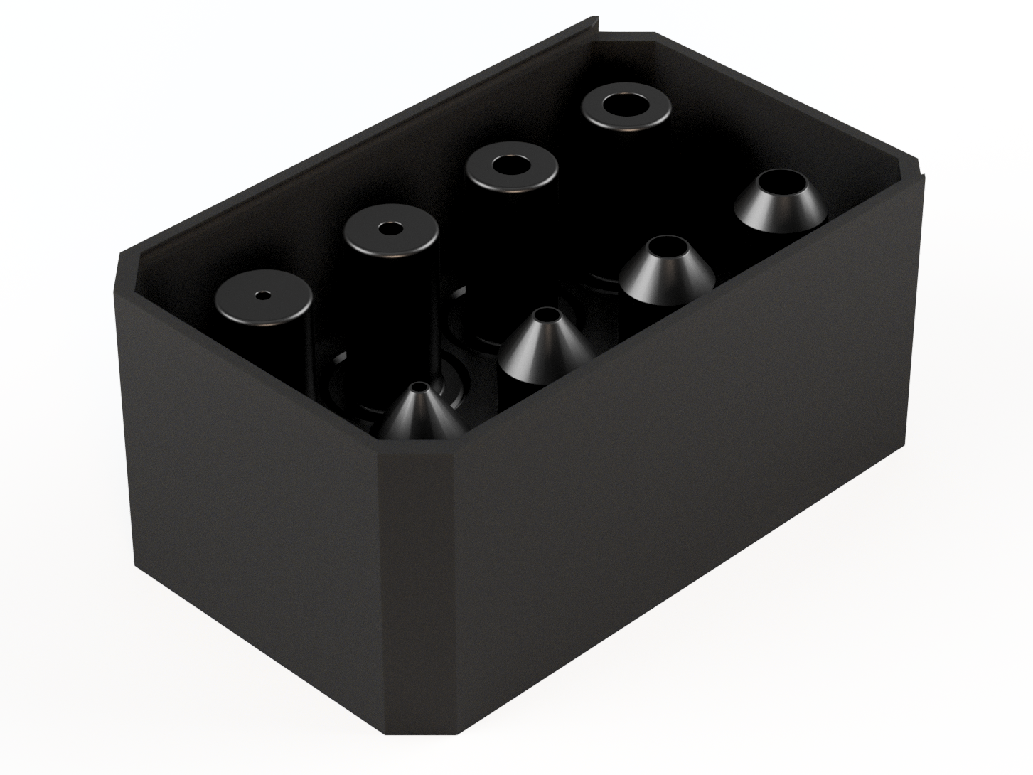 Rapid Fusion PE 320 Chamfered Top Nozzle Pack. These 301 stainless steel nozzles are designed to offer exceptional 3D printing outcomes, each with a different diameter and chamfer size.